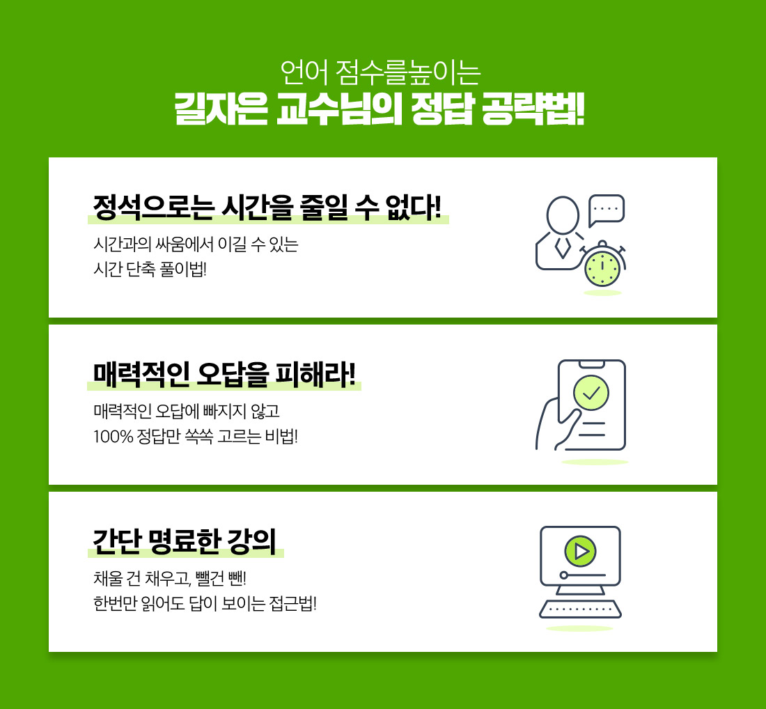 - 로그인 후 참여 가능하며, 1인당 1회 참여 가능합니다. (중복참여 및 강의/쿠폰 재지급 불가) - 강의 및 쿠폰은 참여 즉시 나의 강의실에 바로 지급되며 중복 사용이 불가능합니다. * 강의: 이벤트 참여 후 1일간 수강 가능 * 쿠폰: 나의강의실 ▶ 마이페이지 ▶ 할인권 확인 ▶ 강의 결제 시 사용 가능 (사용 기한: 쿠폰 지급 후 7일) - 무의미한 내용, 도배 등 이벤트 취지에 맞지 않은 내용 입력 시 예고 없이 삭제됩니다. - 쿠폰은 취업 패키지 상품만 적용되며, 단과강의에는 적용 불가능합니다. - 본 이벤트는 예고없이 종료될 수 있습니다. |