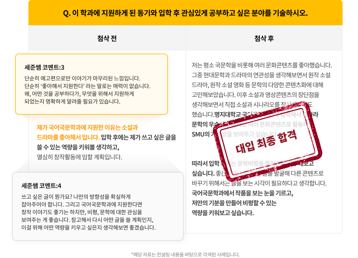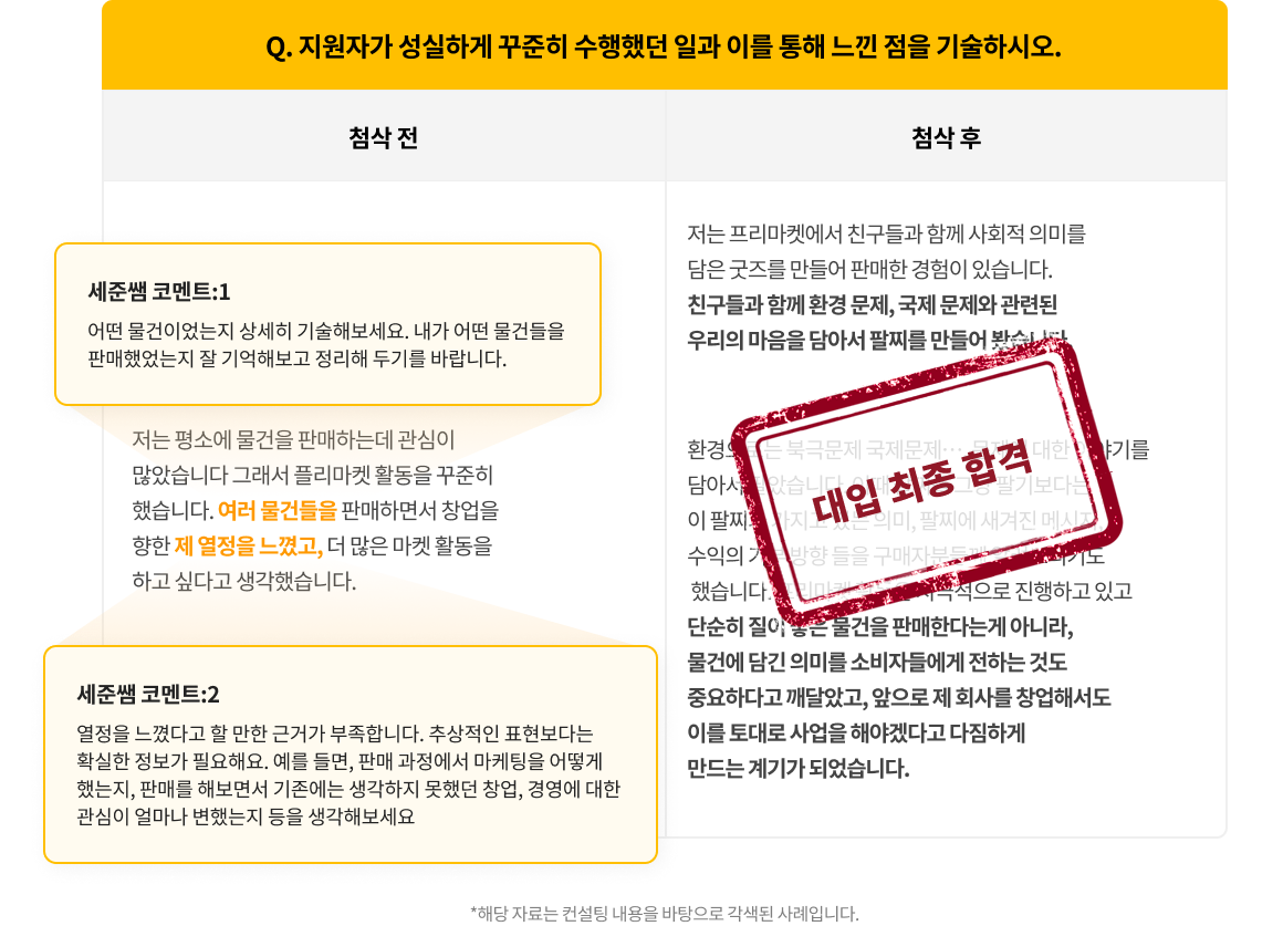 1:1 맞춤 컨설팅 첨삭 맛보기