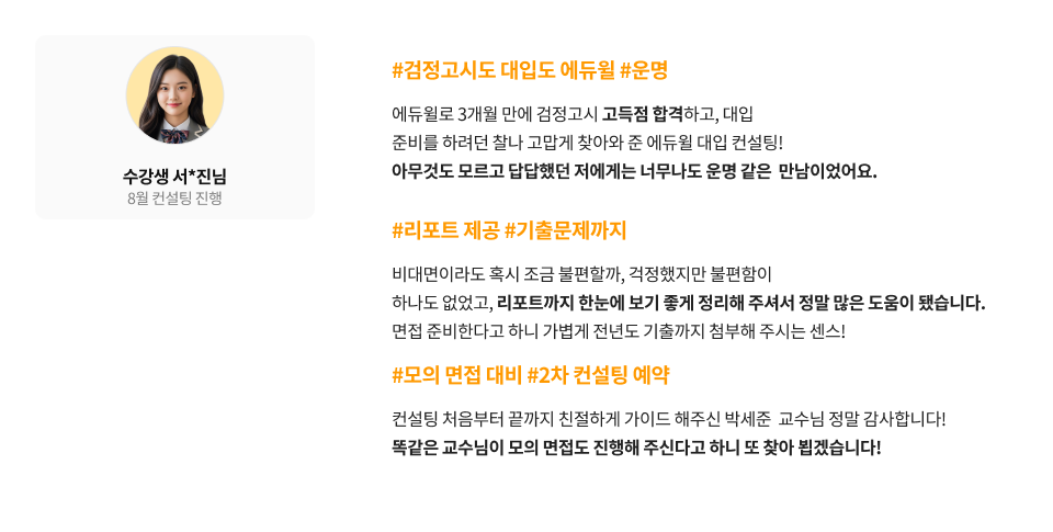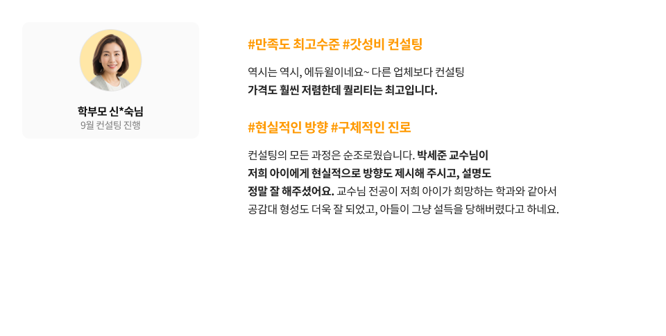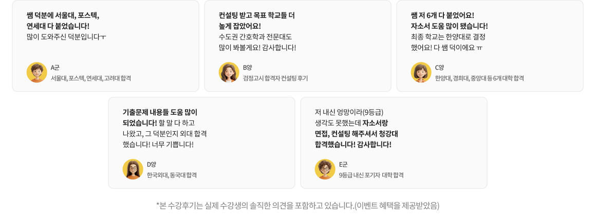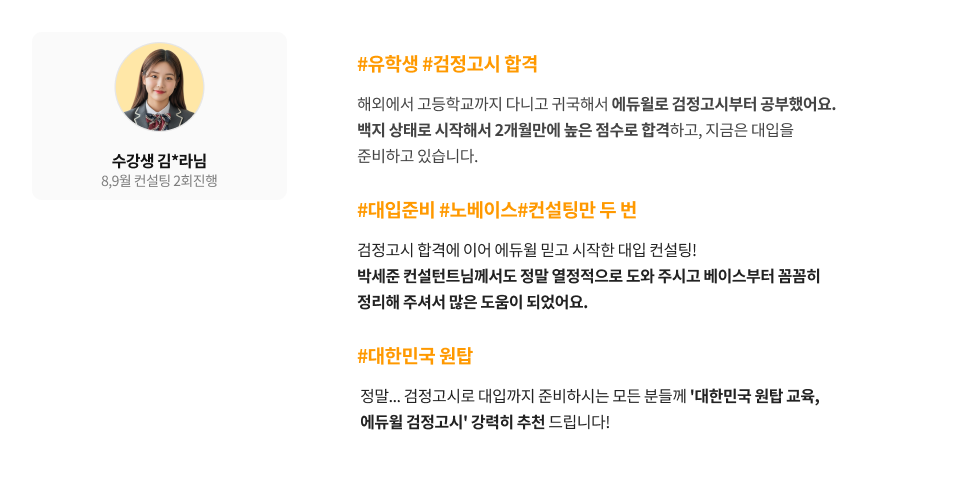 1:1 밀착 컨설팅! 대입 성공 후기!