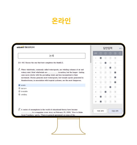 어떤 모의고사보다도* 더 실전에 가까운 난이도와 유형