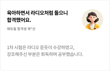 * 본 합격수기는 실제 수강생의 솔직한 의견을 포함하고 있습니다. (이벤트 혜택을 제공받았음)