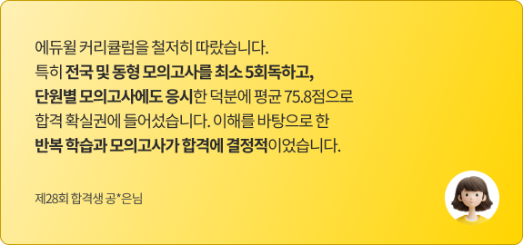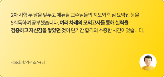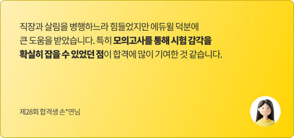 * 본 합격수기는 실제 수강생의 솔직한 의견을 포함하고 있습니다.