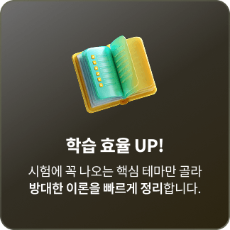 ※ 부교재 사용 교수 제외한 전 교수진: 교안(PDF) 제공 ※ 부교재 사용 교수 (별도 구매) - 이영방 교수: 합격패스 계산문제 - 심정욱 교수: 핵심체크 - 임선정 교수: 그림 암기법 - 오시훈 교수: 테마별 비교정리노트 - 김민석 교수, 한영규 교수: 빈출테마 한쪽정리 ※ 부교재는 [단과·교재] 탭에서 별도 구매 가능합니다. ※ 강의 교안은 수정 업데이트될 수 있으니 최신 버전으로 다운로드 후 수강하시길 바랍니다. ※ 오시훈 교수 부교재(비교정리노트), 김민석 교수&한영규 교수 부교재(빈출테마 한쪽정리)는 3월 말~4월 초 출간 예정이며, 출간 후 [단과·교재] 탭애서 구매 가능하며, 출간일에 따라 순차 배송됩니다. |