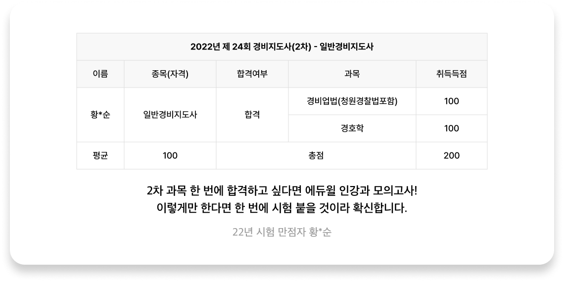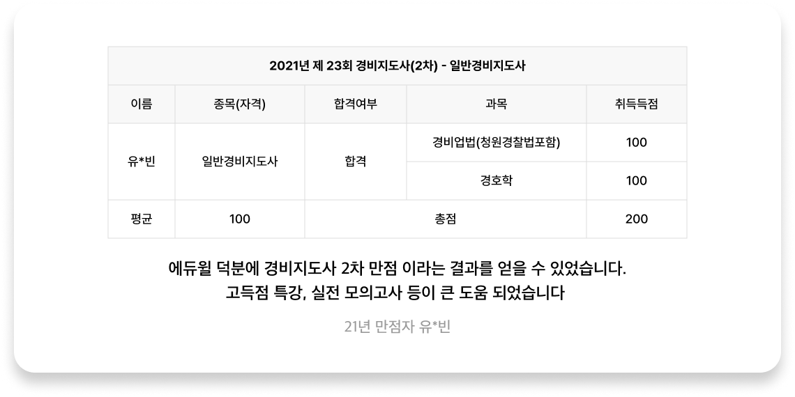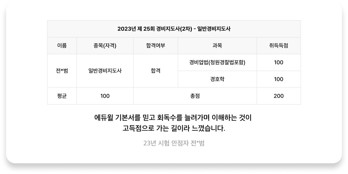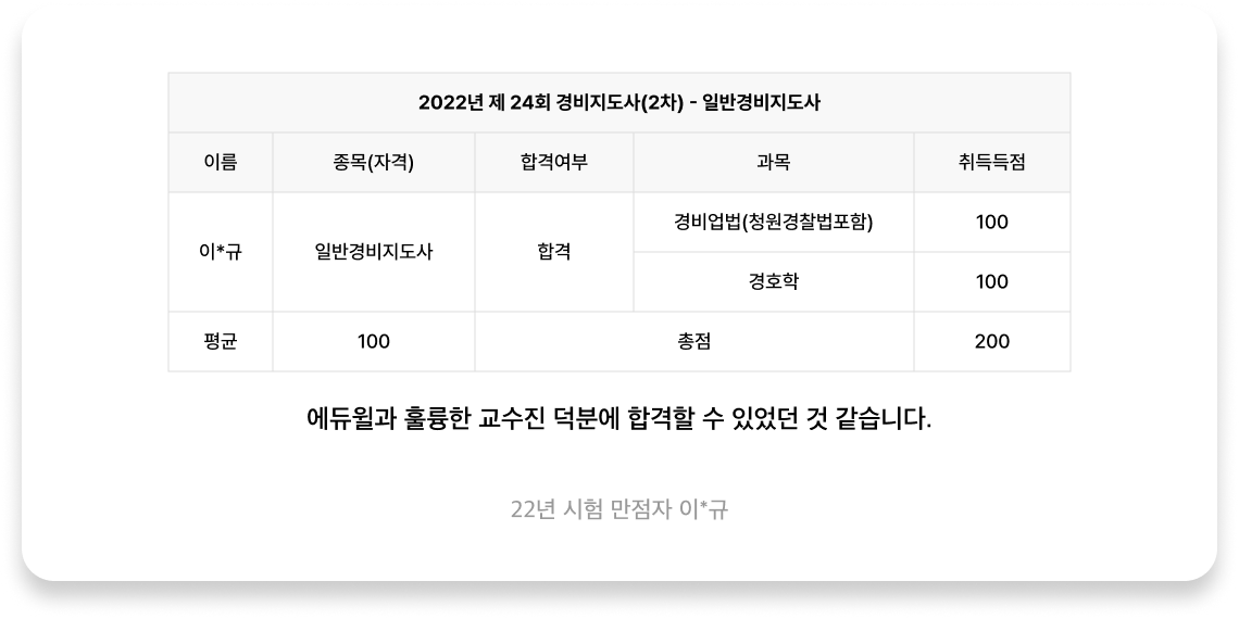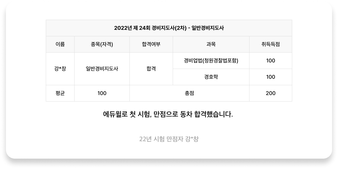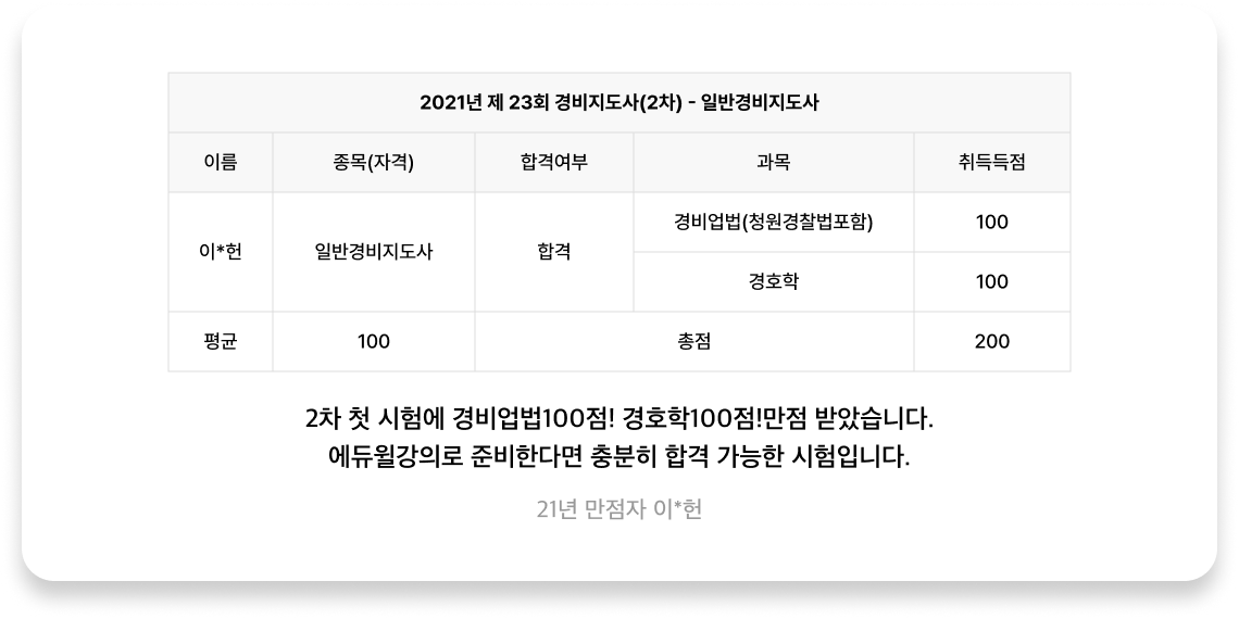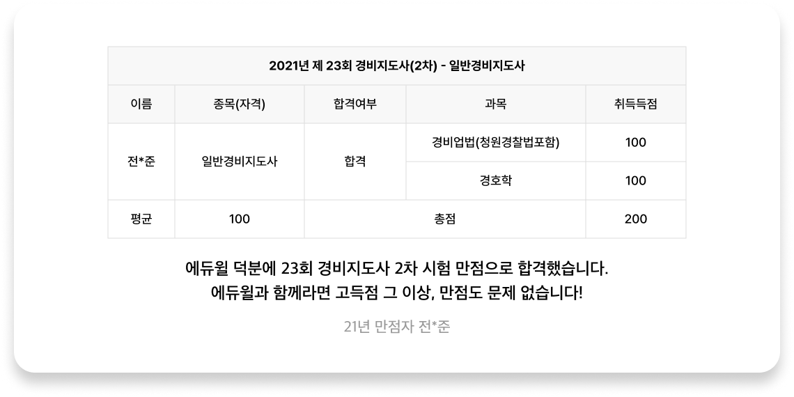 “업계유일!1위 에듀월 경비지도사 만점자 최다 배출!”