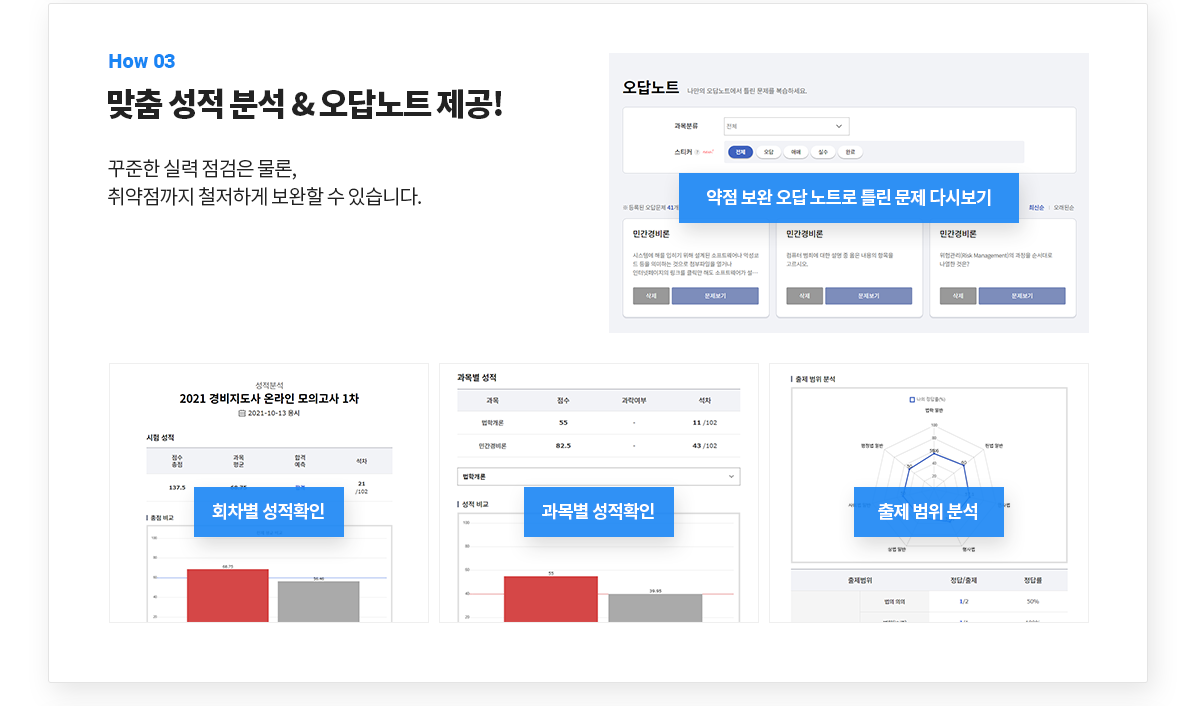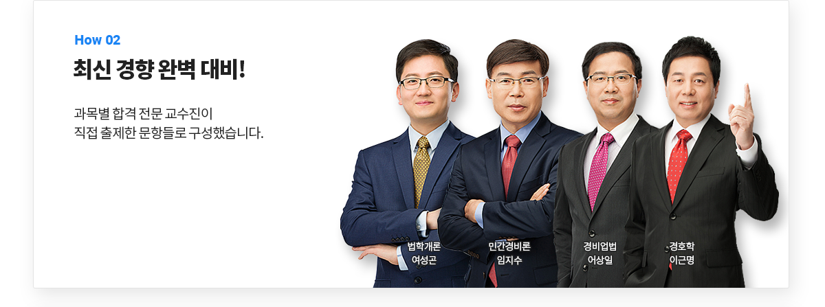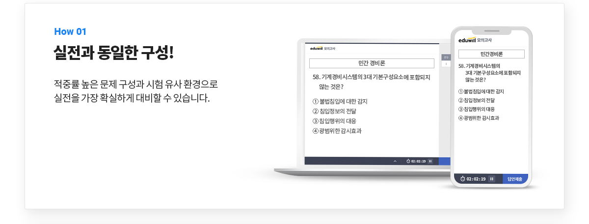 | 응시방법 | 에듀윌 경비지도사 홈페이지 > 나의강의실 > 모의고사 응시 및 내역에서 응시 가능 |