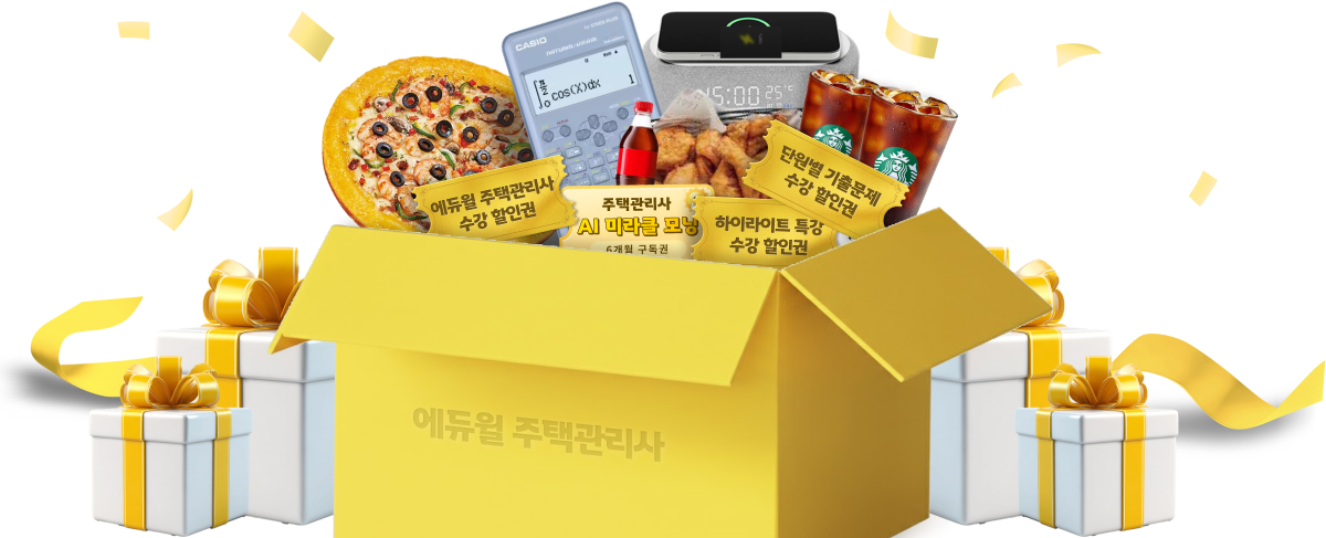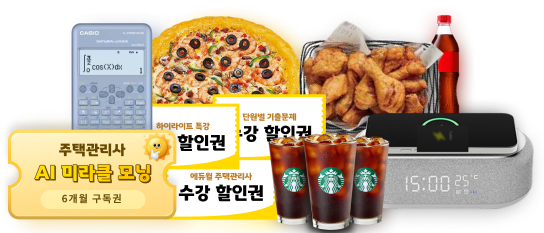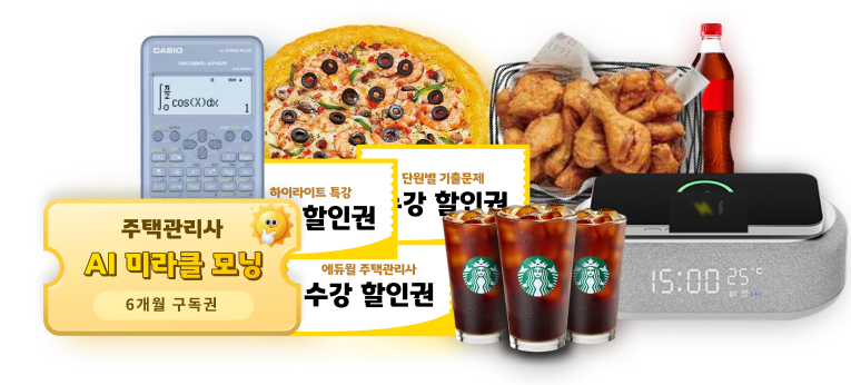 * 경품 : 미스터피자 세트 / 교촌치킨 세트 / 카시오 계산기 / 블루투스 스피커 / AI 미라클 모닝 6개월 구독권 / 에듀윌 주택관리사 수강할인권 / 스타벅스 아메리카노