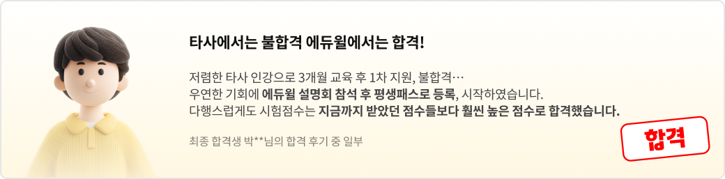 * 본 합격수기는 실제 수강생의 솔직한 의견을 포함하고 있습니다.