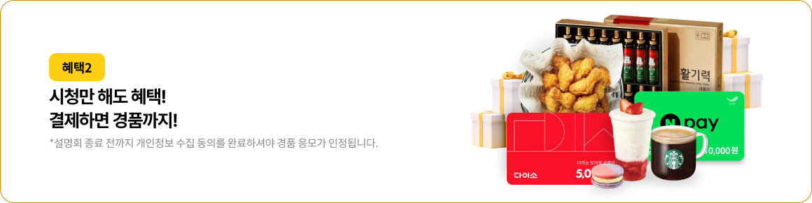 ① 이벤트 혜택은 설명회 특가 상품을 구매한 경우에 추첨으로 증정됩니다.