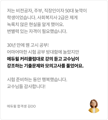 * 본 합격수기는 실제 수강생의 솔직한 의견을 포함하고 있습니다.