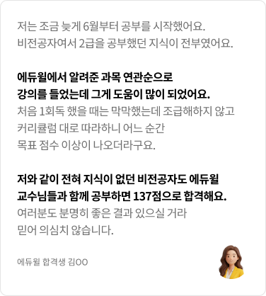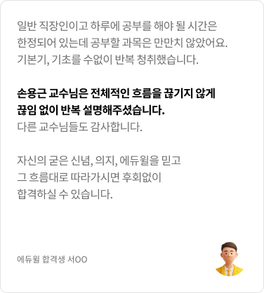 * 본 합격수기는 실제 수강생의 솔직한 의견을 포함하고 있습니다. (이벤트 혜택을 제공받았음)