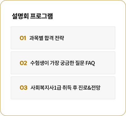 설명회를 통해 ‘방향’을 알고 시행 착오 없이 합격할 수 있습니다