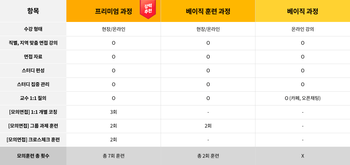 모의면접 및 크로스 체크훈련횟수는 달라질 수 있습니다.