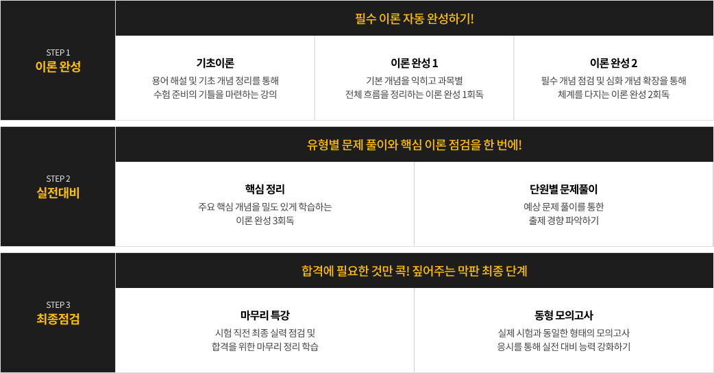 단기 합격을 위한 최적의 커리큘럼을 개발했습니다.
