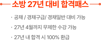 1) 2021~2023 대한민국브랜드만족도, 2019/2020 한국브랜드만족지수 소방공무원 교육 1위 2) 2017/2022 공무원 과정 최종 환급자 수 비교 3) 99%: 에듀윌 소방 대표교수진 강의만족도 평균(25년 5~6월 에듀윌 소방공무원 온라인 강좌 중, 이중희, 이진형, 양승아, 이재준 수강생 기준)