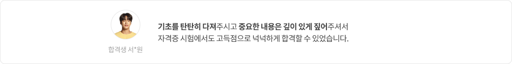 본 합격수기는 실제 수강생의 솔직한 의견을 포함하고 있습니다.